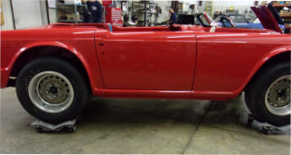 Yes, you are correct! The TR4-TR6 door panel gaps NEVER looked this good when the cars came from the factory! But this level of fit and finish is what’s expected today, especially if the cars were restored here at Macy’s Garage. Many times we’ve had cars brought to us AFTER they’ve been painted elsewhere, and the owners ask us to “adjust” their doors to achieve this level of perfection. Sorry to tell you this, but the time to get the gaps this nice is long before you put paint into the gun and start spraying. The fact is, there just isn’t enough adjustment available to bring panels that are “off” this much into alignment. The fix is to re-make the body lines by a combination of adding and removing metal (welding and grinding) from the edges of the fenders and doors. Only by planning for this well ahead of the paint application can you ever make them come out this nice.