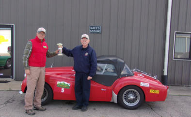 Jeff lives in KS, and he stopped by last week on his way home from New England to show off the trophy he won in the Great American Mountain Rally Revival. Jeff has owned his TR3A for over 40 years now, and has close to 400,000 miles on the car, most of them his! We rebuilt his entire drivetrain a couple of years ago, and he’s now got close to 30,000 miles on our running gear. Jeff was full of praise for the power we built into his TR3 engine, and told us how he had to use every bit of it going up some of the steep mountain roads on this 700 mile, 2-day rally.Now in all of the years Jeff has owned his TR3A, this is the very first time he has participated in any kind of a rally or motorsports competition. But now that the bug has bitten, he’ll be shipping the car to Europe next spring to compete in a 5000KM vintage car rally over there! Look up “Diehard Triumph Owner” in the dictionary, and you’ll surely see Jeff’s picture there. We’re happy we could help him to continue “living the dream”!