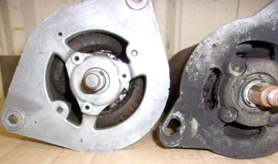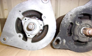Far too many times we’ll find generators on TR2-TR4A like the one on the right. No one has bothered to check the generator mountings for a very long time, and the bolts have loosened enough to allow the generator to wiggle and wear out the mounting holes of the soft aluminum end plate. This can happen at both the front and the rear of the generator, and as replacement end plates are not available, allowing this to occur basically renders an original generator unuseable as a core to rebuild. Since we already have a dwindling supply of original parts, not to mention the possibility of a generator falling off the engine when you’re driving far away from home, it would be a good idea to check the security of the generator mountings every time you are under the bonnet!