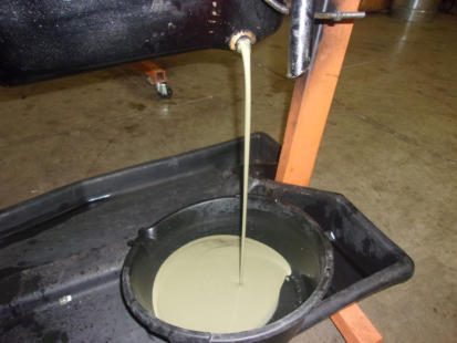 We get a fair amount of TR2/3 steering boxes sent to us for repair AFTER some other owner or shop has attempted the job themselves, but this is the first time we’ve ever seen it done this way! Changing the worm gear (when required) is a specialized operation, and we have developed special tools and procedures for doing so in a fast and efficient manner. Originally, the worm gears were fed onto the lower steering shaft, and then the end of the shaft was flared (like a steel brake line) to keep the gear tightly in place. Apparently the shop who attempted to replace this one could not figure out how to “un-flare” the steering shaft and release the old worm gear, so they ground through the entire length of the old gear along both sides and cut the worm in two to release it. I just hope they weren’t charging the TR3 owner by the hour while performing this painfully slow process! I don’t know how they got the new worm installed, but it was not tight and the steering was erratic, so it ended up here to be done correctly. We did not like all of the cuts and grinding marks they left in the shaft either, so we provided a replacement shaft without the battle scars in the interest of safety.December 2, 2019You know you have a problem when you drain your engine oil and it looks like this! This TR3A engine came to us to be rebuilt because it was blowing blue smoke out of the tailpipe. Once we got the engine out of the car and mounted onto one of our many engine stands, it was time to drain the oil prior to disassembly. The blue cloud rising from the tailpipe was so dense that I don’t think anyone even bothered to check the dip stick, which would have surely displayed this white goopy oil and water mixture. We were only suspecting a broken ring or two, but now it looks to be a bit more serious. Not that any of this changes our game plan, as we always perform a complete rebuild, and are never tempted to just “fix the problem” and throw it all back together. To learn more about our comprehensive approach to engine overhauls, be sure to read our “Engine Rebuild” page under the “INFO” button.