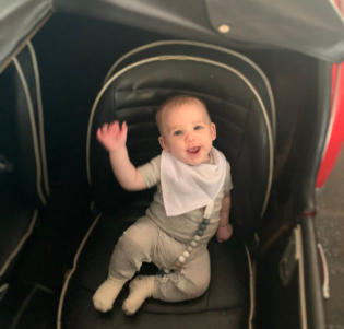 guys, is it? Here we see Grayson Higbee (3 mos) trying out the driver’s seat of his Dad’s TR3A.