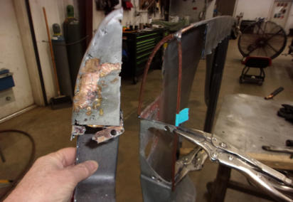 scratch. Take the rear corner of this TR6 rear fender for example: Numerous small patches had