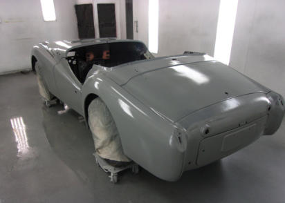 This week’s photo is the exact same TR3A shown in the final phases of metalwork two weeks