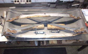 The lower rear corners on all TR2-TR3A trunk (boot) lids (pre-TS60,000) are notorious for rust, and if not repaired by folks who know why, these corners could be one of the first spots to start bubbling up later and spoil your fresh restoration. Triumph spot welded the inner brace structure to the skin while all parts were bare steel, so there was never a chance to protect this area from moisture and stave off the inevitable rust. We begin all of our restorations by chemically dipping to strip paint, bondo and rust, but chemicals cannot work their way into this hidden area. You can also bet that neither sand nor soda blasting, nor that can of paint stripper you bought at the home center is going to get in there either! Knowing the propensity for these corners to rust, we always go the extra mile and drill the spot welds to separate the brace from the skin. This lets us clean and inspect the rusty metal, and replace any sections that are either completely rusted through or getting close to doing so. While it’s apart, we’ll also treat the hidden metal with a weld-through primer to protect this area from rusting all over again.