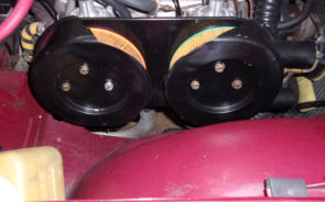 of those times. A large portion of the air filter housing has been cut away from this TR6 engine,