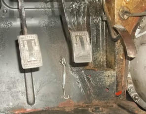 another owner modification that’s hard to explain. A screw eye was installed through the floor, to