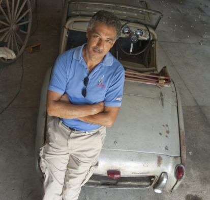 collection consists of the RHD TR2 pictured with him in this photo, as well as a TR3A, a GT6,