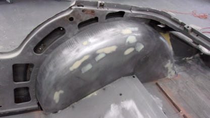 well before the paint goes onto the bodywork. Take this TR3 inner wheel arch for example. We