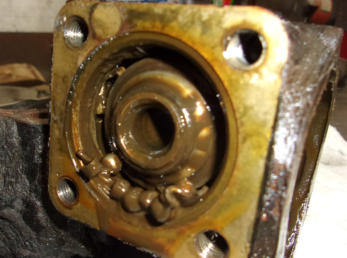Many years ago, we put a “How To” up on our website showing the process to rebuild the TR2-TR3B steering boxes. It was meant to be instructions on how owners could do these at home, but many folks look at it and decide it’s going to be too much work, or require too many expensive special tools. The result has been that we rebuild an average of two of these each and every month, and have maintained that volume for more than 10 years now. Needless to say, we’ve probably seen more of these steering boxes than anyone else in North America, so there’s little today that surprises us any more. Over the course of the last 10+ years we have seen a few with bearings that have lost a couple of balls or occasionally disintegrated like this one, but never in a car that was being actively driven immediately before it arrived here. More probable is that a steering box like this is why the car might have been taken off the road 20-30 years ago! In this case, this steering box is from a TR2 that is presently in our shop for a complete frame-up restoration, and the car ran well enough that we drove it into the shop after it came off of the transport truck. Needless to say, it was a real bear to steer, but we didn’t get to actually see why until months later at our normal time in the whole big process.