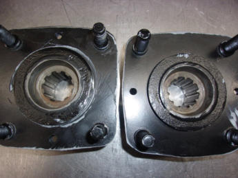 Rear axle flanges on the “Girling” brake cars are held in place with a taper, which is usually as tight as if they had been welded on! Getting the flanges off of the axles to change seals and bearings is usually a real fight, with plenty of four letter words involved. But with the earlier TR2 and TR3 with Lockheed drum brakes, it’s an entirely different matter. The axle flanges are installed via a course spline, and held in place with a washer, BF Nut, and a cotter pin. Remove the pin, nut, and washer, and the hub will slide right off of the axle. The bad news in all of this is that they can also become loose. Whether it’s from not torquing the nut tight enough or from leaving the cotter pin out doesn’t really matter. Just as with a wire wheel spline, any spline which isn’t tight can wiggle and wear. If left to do so for too long, the part(s) will be ruined. The hub on the left has a perfect spline, square cut and flat on the tops of the splines, but look closely at the hub on the right and the worn/sharp pointed tops of the splines can easily be seen. This one had been loose for a very long time, and more importantly for quite a few miles before the car was parked in a barn and forgotten. We wonder if this is the reason the car was taken off of the road, for it surely would have made a loud clunk that was hard to ignore. New replacement hubs are not available today, and good used parts are extremely difficult to find. With that in mind, if you have a Lockheed brake car, check your rear hub nuts annually!