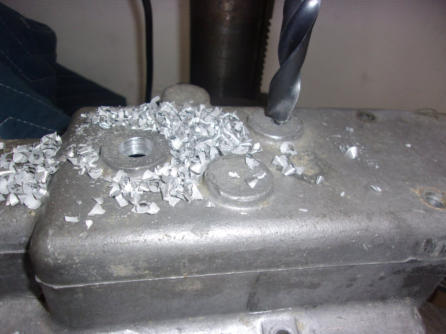 We have a source for overdrive units, both the earlier A-type and the late TR6 J-type, so we’ve been doing a lot of conversions to add this highly desirable option to the gearboxes we rebuild. Part of the conversion process requires that isolation switches be added to the gearbox top (A.K.A. shifter housing), so that the overdrive cannot be engaged unless the transmission is in the correct gear. To add these switches to later tops without plugs in existing holes, we must first locate the center of the cast boss on top of the housing. This center location is then punched and drilled with the correct tap drill size for the odd 5/8”-13 tap we use to thread the holes. We always tap the threads with the drill press, so that the hole will be threaded straight and perpendicular to the base of the housing. Precision in even this seemingly simple task is paramount, and short cuts will only produce botched results.