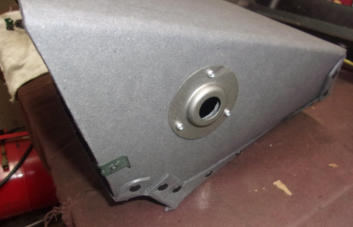 Considering that just about every TR that comes to our shop has a rusted out battery box or shelf, plastic battery box liners are one of the smartest Triumph TR “upgrades” that have ever been made! Water that passes through the TR2-3B bonnet vents and past the rear bonnet edge (where it meets the scuttle) on all TR’s will provide plenty of moisture to collect below the battery, not to mention spilled water and acid mix from over filling a battery or the acid that boils out in a fine mist from over-active charging systems. The boxes for the sidescreen cars fit perfectly, but the later TR4/4A boxes have an interference issue with the heater return pipe at the rear of the head. In those cases, we must perform a little surgery to the front of the liner as shown in this week’s photo. Just be sure to leave enough of a lip along the front edge so that any accumulated water and acid mix will not run out of the box, and cause the metal under that nice plastic liner to rust away all over again!