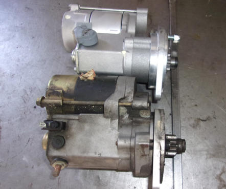 We have a TR6 here for some minor service, and one of the owner’s concerns was that the starter sounded funny, like it was dragging all of the time. Someone had previously installed a new style Hi-torque starter, and we quickly determined that it sounded like it was hanging up in the flywheel. Removing the starter easily confirmed our diagnosis, as we’ve seen enough TR6 starters to recognize that the small pinion gear was sticking out too far from the starter itself. The next step was to decide if the starter had a malfunction that prohibited the gear from fully retracting, or if the starter was the wrong part for a TR6. It only took a brief moment to decide that there was nothing wrong with the starter, and it would work perfectly fine on some other kind of car, but it was totally wrong for use on a TR6. We pulled a new TR6 Hi-torque starter from our parts department and by comparing the two you can see how the small pinion gear is supposed to retract into the starter housing and pull away completely from the flywheel ring gear teeth. We installed the new and correct TR6 starter onto the car, and that problem was checked off of the owner’s to-do list. There are no shortage of “upgrade” parts available for our cars, but you do have to be careful that you’ve (1) received the correct item, and (2) that they are working as they should immediately after installation. Even with “stock” style parts, you can’t trust that the part you removed from the car is correct and that you’re good to go if the new bit looks like the one you just took off. Our Triumphs have been around long enough by now that there have been plenty of chances for wrong parts to have been installed in the past.
