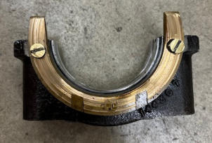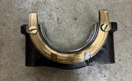 Thrust washers in the 6-cyl Triumph engines have been known to be problematic. Allow the wear to get bad enough and they will drop out into the oil pan. When that happens, the crankshaft is pushed forward to a point where it wears against the engine block and main bearing cap, making an awful racket and ruining those components. If you watch the crankshaft end float (annually) and don’t sit at traffic lights with the clutch pedal depressed (or other driving habits that accelerate the thrust bearing wear) you’ll probably never have a problem. We removed the oil pan on this TR6 just to replace the gasket, and owing to our Triumph experience we decided to check the crank end float while we were there. The spec is .006”-.008”, and this one measured .030”, approaching the danger zone. After patting ourselves on the back for being proactive and saving the owner some money by changing thrust bearings while the pan was already off only felt good until we dropped the main cap. The current owner just bought this car, so we assume that the prior owner did this “repair” just long enough to get the car sold. The crankshaft is ruined, and the current owner does not want to fix it. The owner’s wife says SELL, and hopefully the sellers will let potential buyers know that it needs a major engine overhaul.