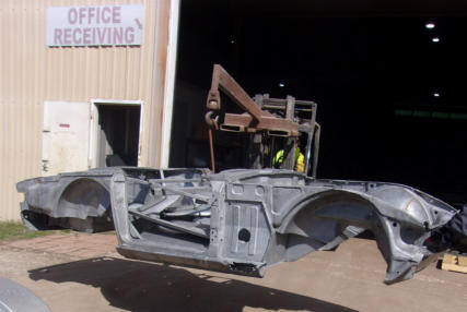 completion. Here is a TR6 body tub being loaded onto one of our trailers after a complete