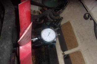 our shop. If the radiator is out for service (as in this case), we’ll set up the dial indicator for a