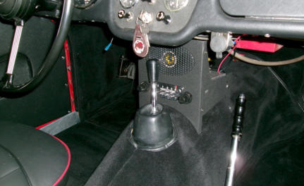 Smith’s Radiomobile kit with speaker and radio mounted on the gearbox cover, just ahead of the