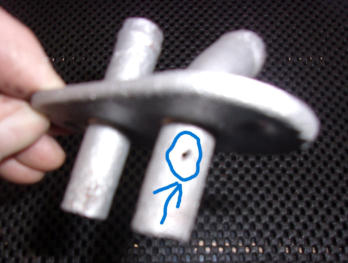 This photo shows the bulkhead fitting, used for hot water to pass from the engine to the heater and back (through the firewall) on a TR4-TR6. The sidescreen cars (TR2-TR3B) use two similar fittings with only a single tube through each. These fittings are made from mild steel, and as such are prone to rust. They are also prone to plug up with sludge and muck that can form in your cooling system so if the heater doesn’t work, this is a good place to begin trouble-shooting. But back to the rust hole, when someone sees a drop of anti-freeze from a hose attached to this fitting, the natural tendency is to simply tighten the clamp and call it done. But after seeing the rust hole in this one, perhaps you’ll be inclined to disconnect the hoses and examine the fitting more closely when you see a leak in that area.