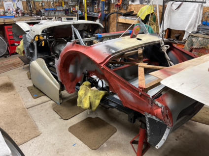 At some point in your restoration, you very well might wake up from the fog and suddenly realize that you’ve gone too far down the rabbit hole. Unfortunately this has also happened with local “restorers” who’ve had your car forever, and they had the same thought long ago but are just too embarrased to tell you. Most times, they simply stop working on your car and hope that you’ll get frustrated and take it away so they don’t have to look at it. Fortunately all hope is not lost, as a call to Macy’s Garage can get your restoration over the rough patch and back on the road to completion. We’ve shown this TR2 home-restoration a few times before, but when adding the complete sequence to our Gallery “Before-After” page, we realized that we’d never shown the very beginning of our magical transformation here in the blog. So this is the first photo that the owner sent to us of the stalled project, in his garage, and it arrived with the usual question of our ability and willingness to help. Those answers were a resounding YES!, and you can see the transformation from loosly assembled panels to complete rolling vehicle on our “Before-After” page (under Gallery). All that remains for the owner to complete is the final bodywork and paint, then the fun parts of final assembly and soaking-up the driving pleasure.