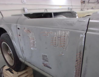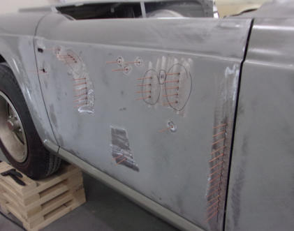The little “pins” (studs) sticking out from this TR6 door are not an attempt to create a porcupine
