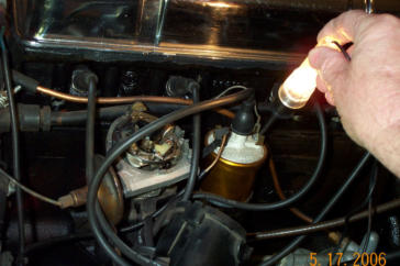 Now all that’s needed is to position the distributor so that the points have opened just enough to stop the
