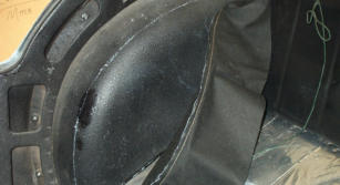 Peel away any excess padding which might extend "up" above the wheel arch.