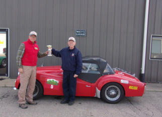 Jeff lives in KS, and he stopped by last week on his way home from New England to show off the trophy he won in the Great American Mountain Rally Revival. Jeff has owned his TR3A for over 40 years now, and has close to 400,000 miles on the car, most of them his! We rebuilt his entire drivetrain a couple of years ago, and he’s now got close to 30,000 miles on our running gear. Jeff was full of praise for the power we built into his TR3 engine, and told us how he had to use every bit of it going up some of the steep mountain roads on this 700 mile, 2-day rally.Now in all of the years Jeff has owned his TR3A, this is the very first time he has participated in any kind of a rally or motorsports competition. But now that the bug has bitten, he’ll be shipping the car to Europe next spring to compete in a 5000KM vintage car rally over there! Look up “Diehard Triumph Owner” in the dictionary, and you’ll surely see Jeff’s picture there. We’re happy we could help him to continue “living the dream”!