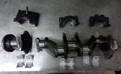 It is very rare to see a broken crankshaft in the 4-cylinder TR2-TR4A engine, so when we find one like this we know we need to dig deeply to find the cause. This engine was just rebuilt by the long term TR3 owner and had only been driven 250 miles before this catastrophy happened. He decided that he would be better off bringing it to us for a “proper” rebuild, and to help his chances that it doesn’t happen again.When the owner delivered the engine and all of his spare parts to us, he happened to have a box containing an extra set of main bearing caps which he suggested we could use if his old ones were damaged. BINGO! The light went on and we had the clue we needed to explain the broken crankshaft. The owner/rebuilder had “swapped” in a set of main bearing caps from another engine block, which is something to be avoided unless you then have the block “line bored”, which he did not. The mis-matched bearing caps were not in perfect alignment, which obviously put a twisting stress on the crank, resulting in the failure you see here. Since we don’t know now which caps are original to what block, we’ll choose a set and have the align-bore done to re-establish a straight crankshaft center line, so this won’t happen again!