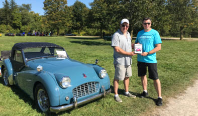 It’s always fun to come in on Monday morning and open e-mails with stories of events and photos of the cars we’ve restored. Last Monday we got this photo from Andrew in Canada, taken at the Toronto British Car Day in Bronte Park. This is the largest British car show in North America, with typically over 1100 cars and motorcycles in attendance. Andrew’s 1957 TR3 which we restored for him in the original (rare) color scheme of Winchester Blue with Grey leather interior handily won the TR 2-3-4 class, and he was told repeatedly that if they had awarded a Best of Show trophy, it would have been his as well!In this photo you can see that Andrew has the soft top and side curtains installed, but this car is also equipped with a factory hardtop and our perfect rear hardtop window. You can see other photos of this car on our June 4, 2018 blog, the TR2/3 gallery page, and in the opening photo of our HOME page. The Winchester Blue is such a striking color today, that I can’t imagine why it didn’t sell well in 1957. With lack-luster sales, the Winchester Blue was dropped for 1958 and replaced with Powder Blue, which then proved to be extremely popular!