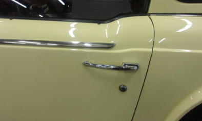 The problem with quick research, is that the first findings you run across might be wrong. Take the position of this chrome spear for example. This TR250 was here for a pre-buy inspection, and this just didn’t look right but I wanted to be positive before including it in my report to the prospective buyer. Whenever I need a memory refresh, I head to our extensive library for help. But imagine my surprise when I opened Piggott’s “Original TR4/4A/5/6” and found photos of two different restored cars, on the same page, and this piece of trim was installed differently on each one! So this shows that you can’t always trust restored cars, as the previous restorer always has a 50/50 chance of getting the details wrong (unless it was restored here!). So how did we decide which one was correct? We continued digging and located several FACTORY photos, and only then could we be certain that the trim strips had been installed upside down on the wrong doors, both here and on the Valencia Blue TR250 shown in Piggott’s book!