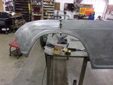 We are well into the restoration of this TR4, and fortunately the owner has been collecting parts and parts cars for many years. He brought us two left front fenders, and both were pretty rough. But fortunately they each had a good end! One was rusted very badly at the rear half, and the front of the other had been used to stop the car against a hard object. The decision to marry the best parts of both was an easy one for our talented metal fabricators.Now if you are going to attempt a project like this, you need to measure about six times before you cut, and then another half dozen or so times before you weld. This entire process took place on and off of the car, using very long straight edges to confirm alignment, and then as a final check it helps to just stand back and visually look down all of the lines before you ever come near it with your welder! And the finished results? In bare metal it’s hard to tell that this fender was made from two, so we have no doubt that the repair will be invisible once the paint has been applied and the restoration is complete.