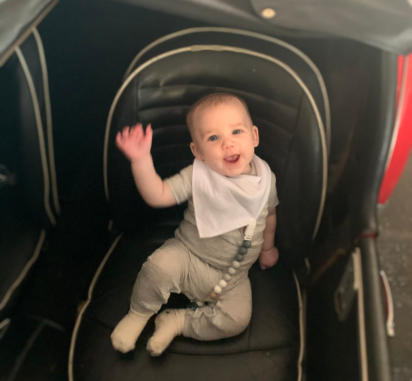 guys, is it? Here we see Grayson Higbee (3 mos) trying out the driver’s seat of his Dad’s TR3A.