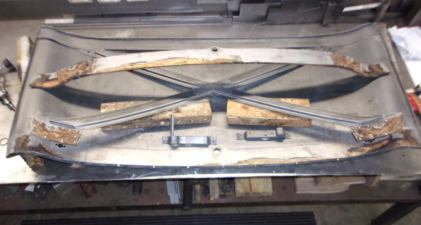The lower rear corners on all TR2-TR3A trunk (boot) lids (pre-TS60,000) are notorious for rust, and if not repaired by folks who know why, these corners could be one of the first spots to start bubbling up later and spoil your fresh restoration. Triumph spot welded the inner brace structure to the skin while all parts were bare steel, so there was never a chance to protect this area from moisture and stave off the inevitable rust. We begin all of our restorations by chemically dipping to strip paint, bondo and rust, but chemicals cannot work their way into this hidden area. You can also bet that neither sand nor soda blasting, nor that can of paint stripper you bought at the home center is going to get in there either! Knowing the propensity for these corners to rust, we always go the extra mile and drill the spot welds to separate the brace from the skin. This lets us clean and inspect the rusty metal, and replace any sections that are either completely rusted through or getting close to doing so. While it’s apart, we’ll also treat the hidden metal with a weld-through primer to protect this area from rusting all over again.