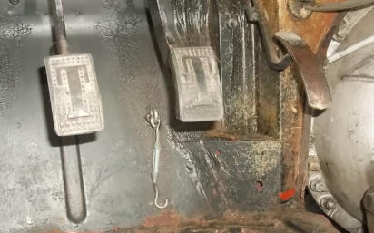 another owner modification that’s hard to explain. A screw eye was installed through the floor, to