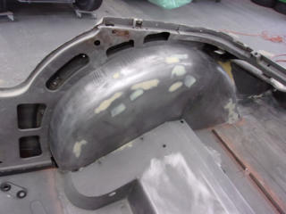 well before the paint goes onto the bodywork. Take this TR3 inner wheel arch for example. We