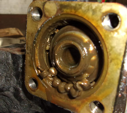 Many years ago, we put a “How To” up on our website showing the process to rebuild the TR2-TR3B steering boxes. It was meant to be instructions on how owners could do these at home, but many folks look at it and decide it’s going to be too much work, or require too many expensive special tools. The result has been that we rebuild an average of two of these each and every month, and have maintained that volume for more than 10 years now. Needless to say, we’ve probably seen more of these steering boxes than anyone else in North America, so there’s little today that surprises us any more. Over the course of the last 10+ years we have seen a few with bearings that have lost a couple of balls or occasionally disintegrated like this one, but never in a car that was being actively driven immediately before it arrived here. More probable is that a steering box like this is why the car might have been taken off the road 20-30 years ago! In this case, this steering box is from a TR2 that is presently in our shop for a complete frame-up restoration, and the car ran well enough that we drove it into the shop after it came off of the transport truck. Needless to say, it was a real bear to steer, but we didn’t get to actually see why until months later at our normal time in the whole big process.