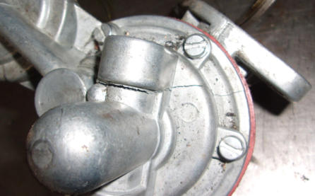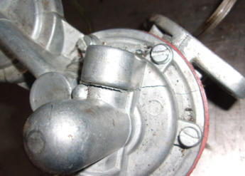 There’s not much we can say about this fuel pump, other than we’ve never seen one like this before! We removed this from a TR4 that was shipped in here because it wouldn’t run. Now this wasn’t the extent of this TR4’s trouble, but it was certainly a significant factor. From the flat circle at the left center of this photo, I can tell you that this is an aftermarket replacement fuel pump. How do we know this? Because the original pumps have a large “AC” cast into the top of this flat area. I’ll also add that we’ve been experiencing a very high rate of new replacement pump failures in the past 12-18 months, many of which fail before we can even pull the cars out of the shop. We’ve tried all of the reasonably priced replacement pumps from several different suppliers, and they all suffer from the same problems, meaning that they won’t pump fuel. For years we have preferred to replace fuel pumps rather than rebuild them, because of the economics involved. The replacement pumps did work well, and the cost of a new pump was well below the cost of a rebuild kit and the labor to rebuild it. Now that the replacement pumps suffer from quality issues, our only choice is to rebuild the old pumps here in our shop at a higher net cost to our clients. But needless to say, we won’t be rebuilding this one!