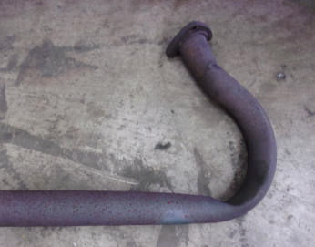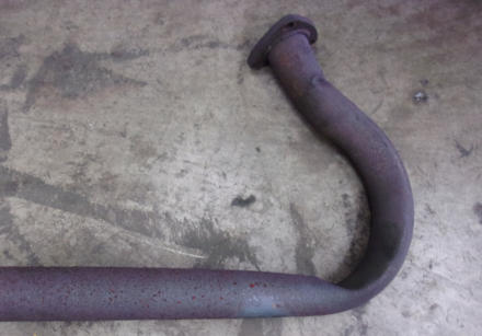 This was interesting. Apparently at some time in the distant past, this TR3A had been “punched” in the rear end. The accident damage had been “repaired”, but when we saw this pipe and went looking, we did find signs of a rear end collision. The accident pushed the exhaust system forward, collapsing the exhaust pipe in the process. We have no way of knowing whether or not this was noticed at the time, or if the post examination and repairs were limited to the obvious damage at the rear of the car. One thing we don’t have much doubt about though, is that a big exhaust system restriction like this would certainly have reduced the engine’s “pep”.
