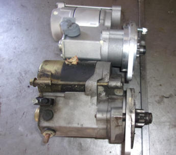 We have a TR6 here for some minor service, and one of the owner’s concerns was that the starter sounded funny, like it was dragging all of the time. Someone had previously installed a new style Hi-torque starter, and we quickly determined that it sounded like it was hanging up in the flywheel. Removing the starter easily confirmed our diagnosis, as we’ve seen enough TR6 starters to recognize that the small pinion gear was sticking out too far from the starter itself. The next step was to decide if the starter had a malfunction that prohibited the gear from fully retracting, or if the starter was the wrong part for a TR6. It only took a brief moment to decide that there was nothing wrong with the starter, and it would work perfectly fine on some other kind of car, but it was totally wrong for use on a TR6. We pulled a new TR6 Hi-torque starter from our parts department and by comparing the two you can see how the small pinion gear is supposed to retract into the starter housing and pull away completely from the flywheel ring gear teeth. We installed the new and correct TR6 starter onto the car, and that problem was checked off of the owner’s to-do list. There are no shortage of “upgrade” parts available for our cars, but you do have to be careful that you’ve (1) received the correct item, and (2) that they are working as they should immediately after installation. Even with “stock” style parts, you can’t trust that the part you removed from the car is correct and that you’re good to go if the new bit looks like the one you just took off. Our Triumphs have been around long enough by now that there have been plenty of chances for wrong parts to have been installed in the past.