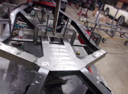 Week two of our 3 week look into this TR6 frame repair. In actual time, this only took 2-3 days and cost the client less than $2000. Much better than the $7k plus he was looking at for a completely new frame (plus options and shipping!). You can plainly see where the weak sections have been removed from the two central rails, and the inside of each box has been cleaned and painted. Look close and compare this to last week’s photo and you can see that both trailing arm mount sections and a large portion of the outer perimeter frame is missing from the upper right corner of this week’s pic. There is no need to be concerned about repairing a frame like this because a close look at any frame will show that they were originally fabricated from many smaller pieces that were welded together. The factory had a jig to hold all of the pieces in alignment before they were welded, and the new frames which are available for that $7k price tag are made by the same exact process. We too have our own flat frame table and jig to hold all of the pieces in alignment, so all frames repaired here will be just as strong and true as a good original or a 100% new frame. The only thing lacking is the high cost!May 28, 2024The Triumph TR4A-TR6 frames are very prone to rust, so much so that we created our own frame table so that we can repair them here. The first place where this rust becomes visible is usually the rear suspension trailing arm mount sections, and digging in to repair those will usually reveal additional “hidden” damage. It’s usually enough to repair while pieces are removed using carefully fabricated sections of the same gauge steel, and TIG welding it all solidly in place. In this week’s photo, only the lower “T-Shirt” in the center has been removed. As the bottom is always going to be where the worst rust happens, we will work most of the repairs with the frame positioned upside-down and firmly secured onto our frame table. Next week we’ll show this same angle again, but after all of the weak and rusty sections have been removed.