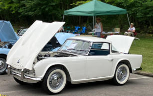 The Triumph Register of America (TRA) held their 50th Anniversary meet last week, and we took both Tonda’s 1961 TR4 (CT288L) and Mark’s 1957 TR3 (TS17734L). Shown here is the TR4. This car has been to TRA only once before (in 2018), when it was awarded Best of Show (BOS) honors on top of the club’s first ever perfect 100 point judged score in the history of the club. TRA sends all former BOS winners to the “Premier” class for at least 5 years, where they are still judged but ineligible to win BOS a second time. We considered re-entering the “normal” concours this year, but there were two cars competing for BOS that had been at our shop for a lot of work, and we didn’t want to compete with our own clients. So while Tonda’s TR4 was again judged to be a perfect 100 points (6 years after the first time), she was still not eligible for Best of Show honors. And now there are only TWO times that a car has achieved the perfect 100 points in the 50 year history of TRA, and both times it just happened to be this same car!