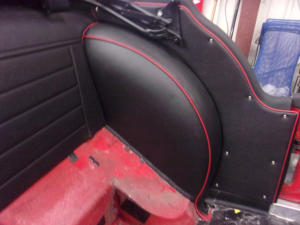 interior, and he decided to make it “POP” by matching the red paint with red piping on the panels