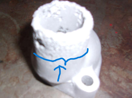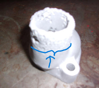 While we’re on the subject of cooling system corrosion, we’ll show this thermostat cover from a 4-cylinder TR2-TR4A. Even aluminum parts like this will corrode (rust) from the acids that develop in a cooling system, which once again makes it hard to keep a hose connection from leaking. You can minimize the effects of this cooling system corrosion by changing your coolant (50/50 green antifreeze mixture) every 2-3 years. Antifreeze contains additives which prevent cooling system corrosion, and these additives wear out or loose their effectiveness, even in collector cars which are parked for lengthy periods and driven infrequently. Do not run straight water in your cooling system (even if you live in a warm climate where it will never freeze) because you won’t have the benefits of the additives contained in antifreeze. You should also never use the modern pink or clear (not green) “permanent” antifreeze which is not engineered for the cast iron engine blocks and heads in our vintage Triumphs. (And just for the record, they aren’t really “permanent” either!) And speaking of acid build-up in our Triumph liquids, you should also change your engine oil and filter annually, regardless of miles driven. The same phenomena happens inside an engine and can eat away at bearings and soft internal components if allowed to sit and deteriorate.